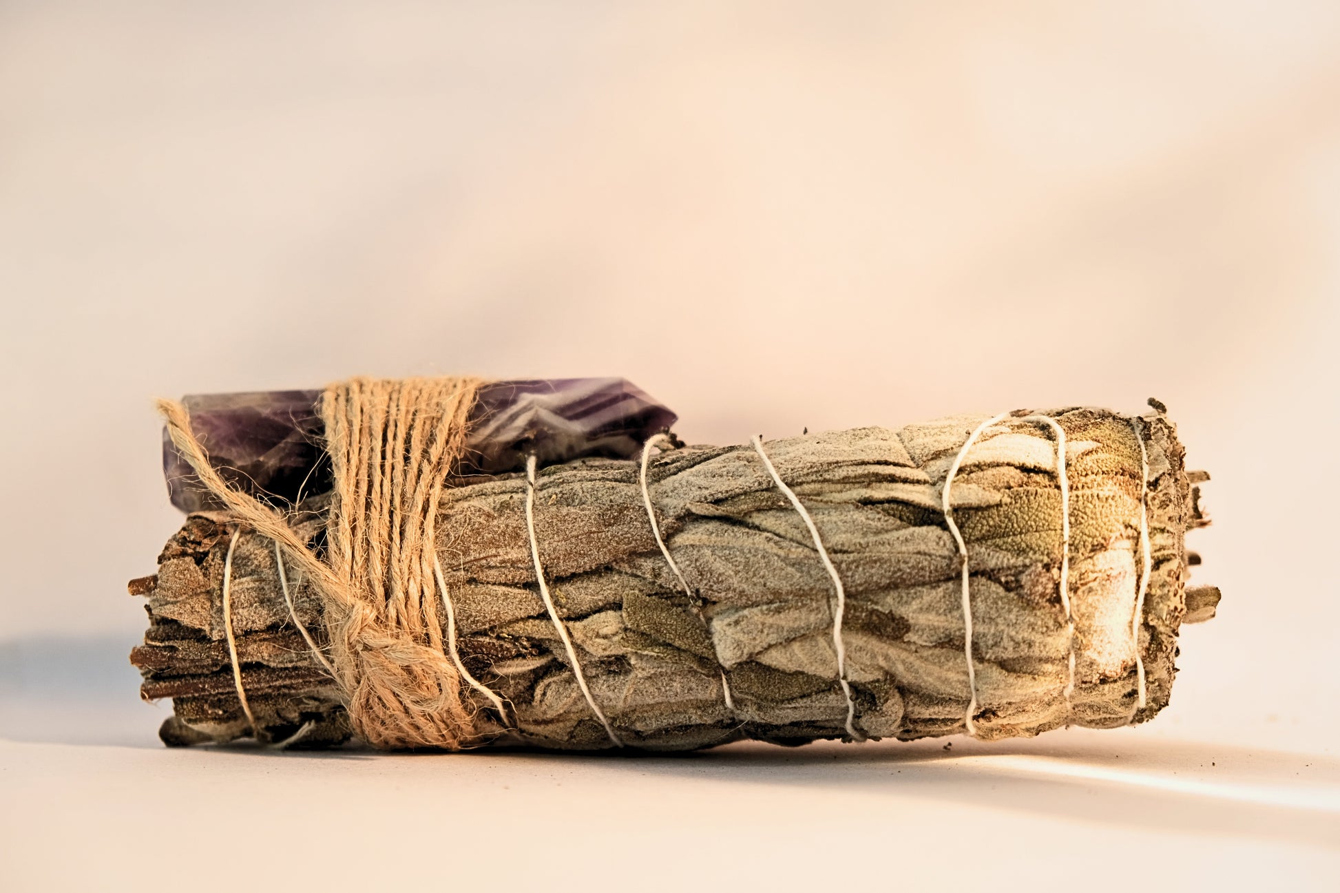 Infused with Amethyst, this sage bundle is perfect for clearing the mind, deepening meditation, and promoting inner peace. Amethyst connects to the Third Eye and Crown chakras, enhancing spiritual awareness.