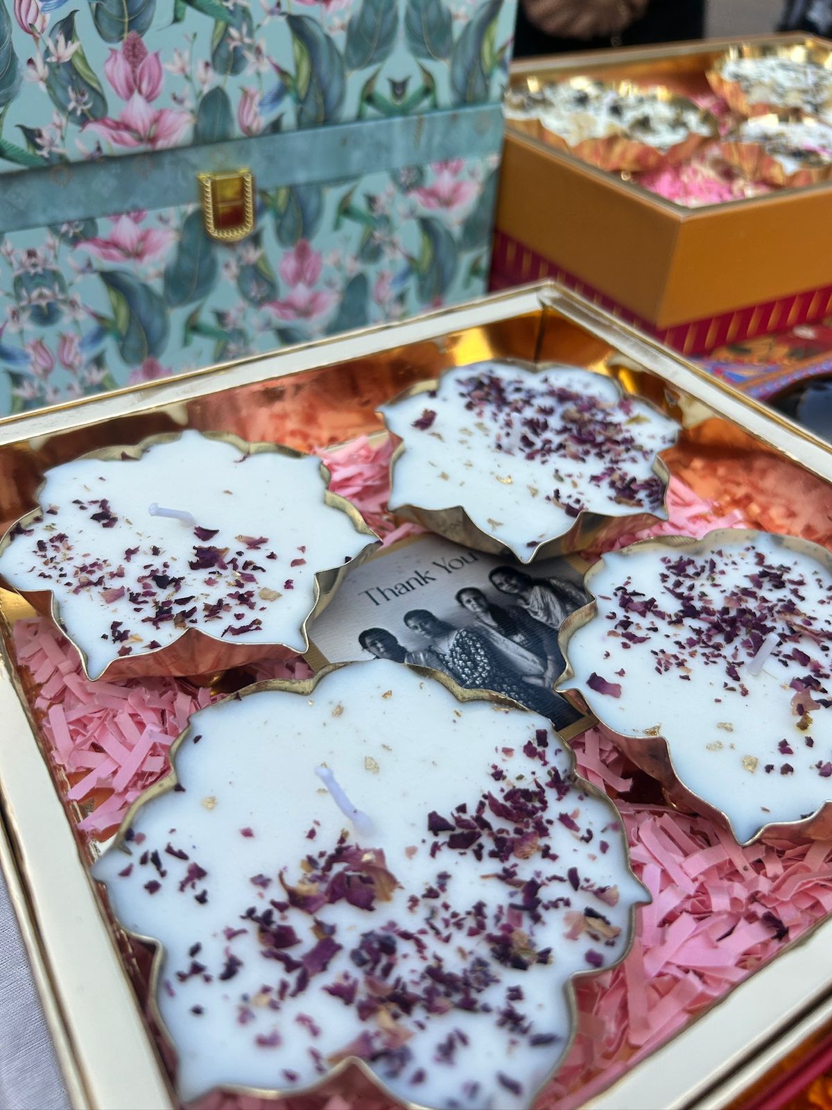 | Description | An exquisite Set of 4 Urli Candles, this collection is an ode to Earth's natural elegance. The classic, heart-opening scent of Rose is softened and enriched by a warm base note of creamy Vanilla. This blend is beautifully presented in the traditional Urli form, symbolizing simplicity and natural flow. It fills your space with a comforting, familiar fragrance that grounds and nourishes the soul. |